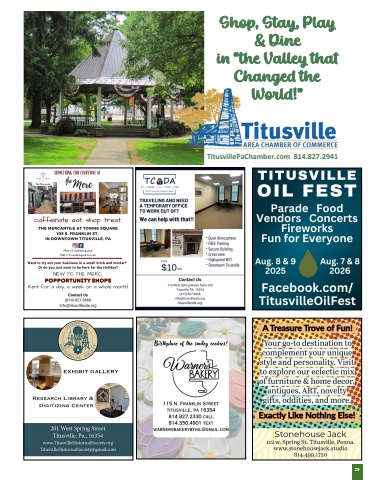 29TitusvillePaChamber.com 814.827.2941Sho%u019b, Sta%u01bb, Pla%u01bb & Din%u016c i%u018d %u201cth%u016c Valle%u01bb tha%u01a6 Change%u016a th%u016c Worl%u016a!%u201d